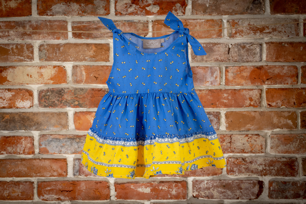 CASTELLANE BLEU/JAUNE - sukienka dla dziewczynki 100% bawełna