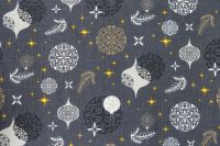 kolorystyka: białe bombki i gwiazdki na tle w kolorze atracytowym