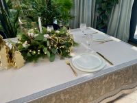 Dzięki powłoce Teflon®️ Fabric Protector obrus posiada średnią plamoodporność która sprawi, iż rozlane na obrusie płyny zatrzymają się w postaci kropli, które można bez problemu zebrać papierowym ręcznikiem.