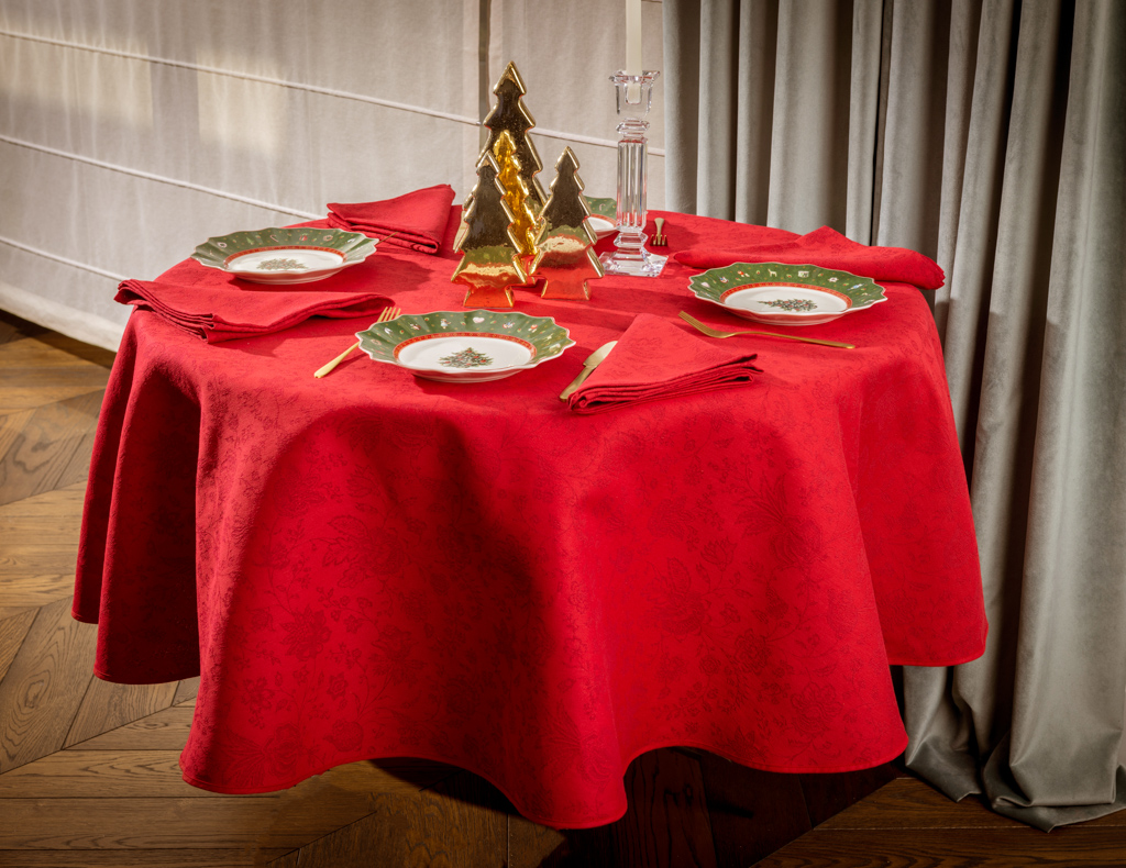 Obrus świąteczny żakardowy DAYA ROUGE 100% bawełna okrągły średnica 180 cm