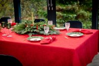 Elegancki obrus żakardowy w jednolitym intenstwynm kolorze czerwonym z delikatnym wzorem kwiatowym. Idalne na wszelkie okazje. Świetnie sprawdzi się na święta, ale nie tylko, również przy innych okazjach w gronie przyjacioł czy rodzinnym.